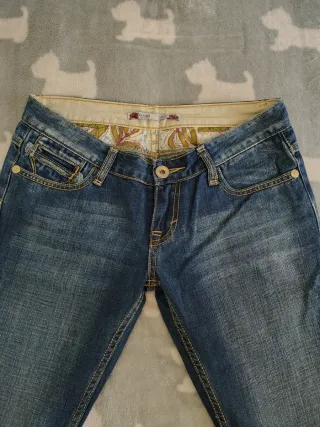 Bellissimi jeans vintage a vita bassa, dal lavaggio scuro, del brand Gaudì. Tasche anteriori e posteriori. Chiusura con bottone e zip. 100% cotone, taglia 42 corrispondente ad una S. Le misure: Lunghezza complessiva 109 cm Vita 37 cm Altezza dal bottone al cavallo 19 cm davanti e 27 cm dietro Lunghezza gamba 85 cm Coscia 26 cm. Sono in perfette condizioni. Sono disponibile a trattative. Applico sconti se si vuole creare un set dal mio guardaroba. Nei miei pacchetti, confezionati con cura, lascio sempre un regalino per i miei acquirenti ❣️