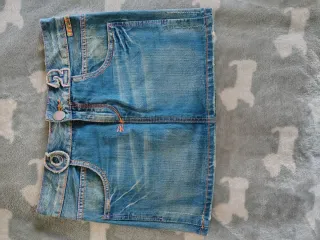 Deliziosa gonna corta/minigonna in jeans denim dal lavaggio chiaro, perfetta per un look casual. Tessuto jeans resistente 100% cotone. Dettagli con cuciture a contrasto. Design con tasche. Chiusura con bottone e zip. Le cerniere delle tasche posteriori hanno dei pendenti a forma di fiorellino leggermente ossidati, che possono essere trattati e riportati allo stato originario. Taglia 42 italiana, veste una S. Misure: lunghezza 36 cm vita 42 cm. Scrivimi in chat per qualsiasi informazione. Sono disponibile a trattative. Applico sconti se si vuole creare un set dal mio guardaroba. Nei miei pacchetti, confezionati con cura, un regalino