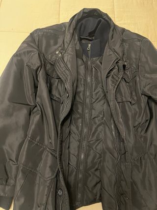 Giubbetto Geox nero con gilet interno e doppia chiusura. - Gilet interno imbottito. - Chiusura con zip e bottoni. - Tasche frontali con patta. - Collo alto con chiusura a bottoni.