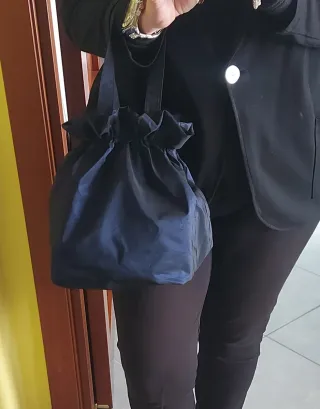 Borsa elegante con un affascinante effetto cangiante. Il design a sacchetto la rende versatile e alla moda. - Materiale: tessuto cangiante - Chiusura: coulisse - Manici: a braccio