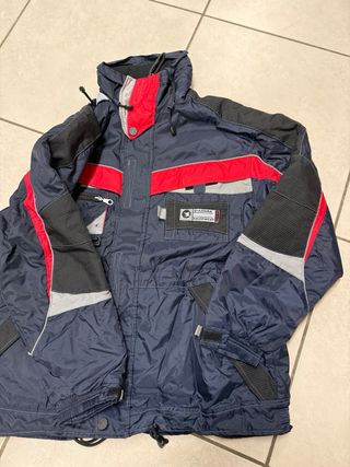 Giacca sportiva Diadora con un design accattivante. - Colore blu con dettagli rossi e grigi. - Patch Diadora Equipment sul petto. - Tasche frontali con zip. - Cappuccio integrato.