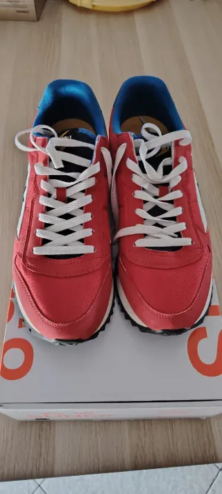 Sneakers uomo Sun68. - Tomaia in tessuto rosso. - Dettagli bianchi e blu. - Logo Sun68 sul lato. Condizioni pari al nuovo, indossate una sola volta, complete di scatola originale
