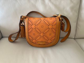Borsa a tracolla The Bridge in pelle con un bellissimo design traforato. - Colore: arancione/marrone - Dettagli traforati con borchie - Tracolla regolabile
