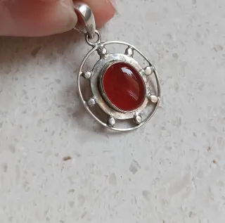 Elegante ciondolo in Argento 925 con una bellissima pietra di Corniola incastonata. - Materiale: Argento 925 - Pietra: Corniola