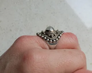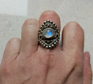 Elegante anello in Argento 925 con una splendida Pietra di Luna. Misura in foto. - Design unico con dettagli lavorati. - La pietra mostra riflessi cangianti.