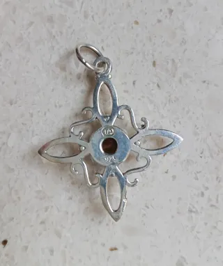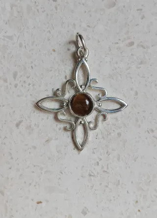 Elegante ciondolo in Argento 925 con pietra naturale Occhio di Tigre. Dimensioni in foto. - Design a forma di croce stilizzata. - Dettagli lavorati. - Pietra centrale rotonda.