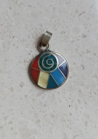 Bellissimo ciondolo in Argento 950 con pietre naturali. - Design circolare con spirale centrale. - Segmenti colorati in diverse tonalità. - Chiusura ad anello per collana.