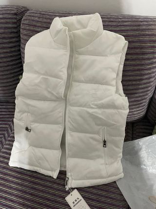 Gilet imbottito bianco, perfetto per aggiungere uno strato extra di calore. - Chiusura con zip frontale. - Tasche laterali con zip.