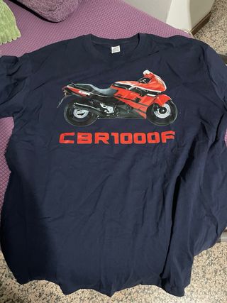 Maglietta blu con stampa di una moto CBR 1000F. - Stampa dettagliata della moto. - Taglia XXL.