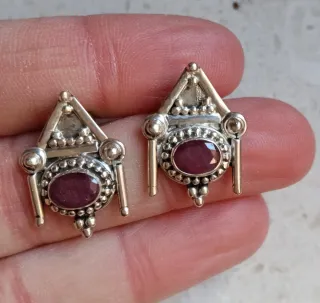Eleganti orecchini realizzati da artigiani indiani in Argento 925, impreziositi da pietre dure naturali di Radice di Rubino.