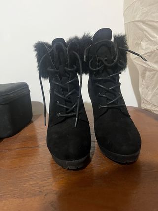 Vendo stivaletti neri in camoscio, con morbida pelliccia sul bordo e chiusura con lacci, con tacco. Modello caldo, raffinato e ideale per la stagione invernale. Usato poco, suola intatta con giusto qualche imperfezioni per via del poco utilizzo effettuato.