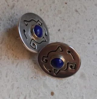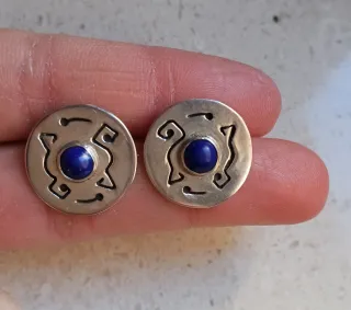 Eleganti orecchini realizzati da artigiani peruviani in Argento 925 con incastonati preziosi Lapislazzuli. - Materiale: Argento 925 - Pietra: Lapislazzuli - Design: Rotondo con decorazioni tribali
