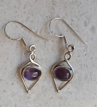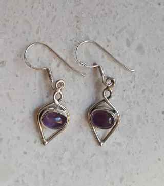 Eleganti orecchini pendenti in Argento 925 con incastonata una pietra dura naturale di Ametista. - Argento 925 - Pietra naturale di Ametista - Design pendente