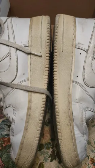 Scarpe Nike Air Force 1, un classico intramontabile. Molto usate difetti in foto. Suola integra. Più omaggio a sorpresa 🎁. Con scatola originale. - Tomaia in pelle bianca. - Suola in gomma resistente. - Chiusura con lacci.