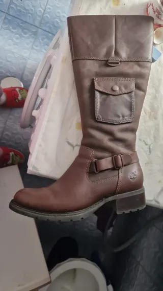 Eleganti stivali in pelle Timberland. Originali,ancora nella scatola mai indossati - Modello alto fino al ginocchio. - Dettaglio con fibbia e taschino. - Logo Timberland sul lato.