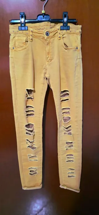Jeans alla moda con dettagli unici. - Design strappato. - Applicazioni di paillettes visibili. - Vestibilità comoda.