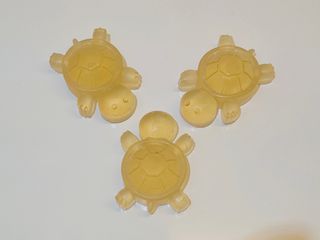 Delizioso sapone artigianale al miele a forma di tartaruga. Perfetto per un regalo o per un tocco di originalità nel bagno. - Realizzato a mano. - Misura tartaruga: 6 x 4 x 1 cm. - Set da 3 pezzi