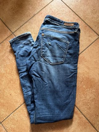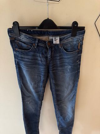 Jeans H&M in denim. - Modello super skinny. - Effetto used. - Vita media.