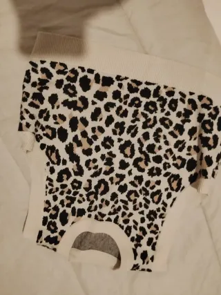 Elegante gilet da donna con una vivace fantasia leopardata. Un capo versatile per aggiungere un tocco di stile. - Fantasia leopardata. - Bordi bianchi a contrasto. - Collo alto a costine.