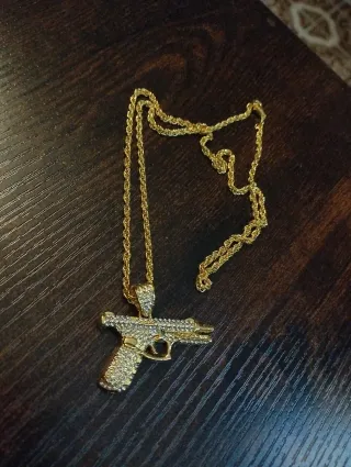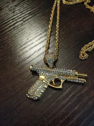 Collana unisex con ciondolo a forma di pistola. Un accessorio che non passa inosservato. - Materiale: lega di zinco. - Design dettagliato.