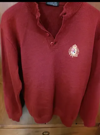 Maglione in pura lana con un elegante stemma. - Stemma Borboni ricamato sul petto. - Scollo a V con bottoni. - Polsini e fondo a costine.