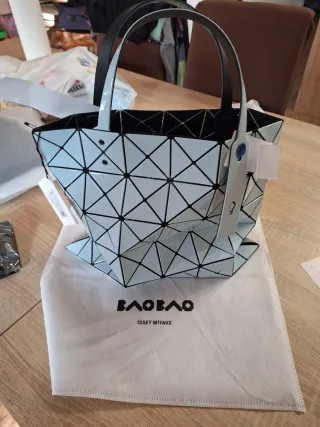 Borsa Bao Bao Issey Miyake dal design geometrico e moderno. - Modello iconico con pannelli triangolari. - Manici superiori. - Chiusura interna. Nuova, bicolore