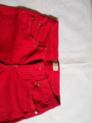 Eleganti pinocchietto rossi da donna. - Tessuto confortevole. - Dettagli con cuciture a contrasto.