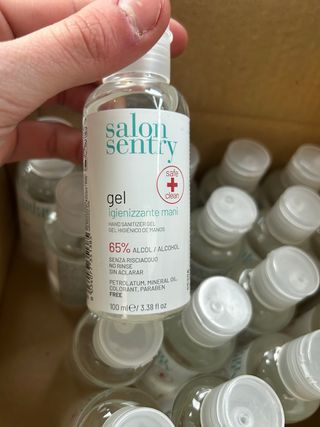 Gel igienizzante per le mani Salon Sentry. - Formato da 100 ml (3.38 fl oz). - Contiene il 65% di alcol. - Senza risciacquo. - Formula senza petrolato, olio minerale, coloranti e parabeni. Vendo singolarmente o in blocco sia quelli da 1L sia quelli da 100ml 1l= 3€ cadauno 100ml=0,50€ cadauno Disponibilità: 20pz da 1l 3scatole da 24pz di 100ml