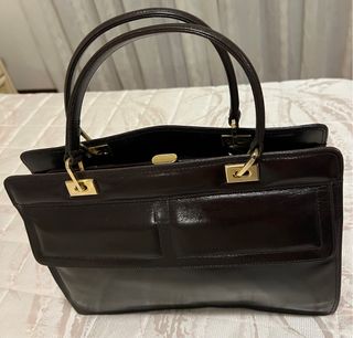 Borsa da donna in pelle marrone lucida, un accessorio classico e raffinato. - Materiale: pelle - Colore: marrone lucido. - Dettagli metallici dorati. - Manici superiori. - Ottime rifiniture, sia esterne che interne. - Tre comparti interni, di cui quello centrale chiudibile a pochette, con cerniera. - Comoda tasca esterna, con cerniera, ricoperta da un sormonto di pelle.