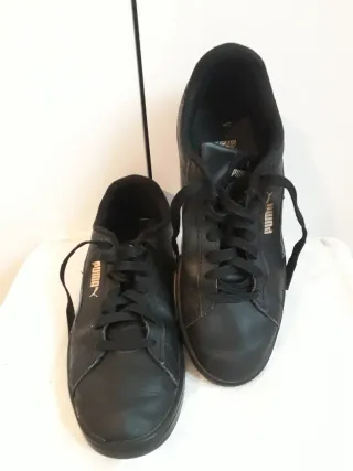 Sneakers Puma in pelle nera, taglia 41. - Logo Puma dorato sul lato. - Chiusura con lacci neri. - Suola in gomma. Usate, in ottime condizioni, non ci sono danni o difetti. #uomo_dmc #puma #puma41 #ottimecondizioni