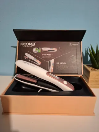 Piastra per capelli da viaggio HOOMEI, pratica e maneggevole. Senza fili - Ricaricabile tramite USB. - Display LED per la visualizzazione delle impostazioni. - Design elegante in color rosa e bianco. #hair #hairstyle #travel
