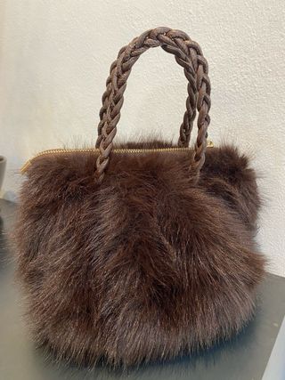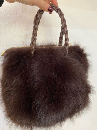 Elegante borsa a mano in ecopelliccia, perfetta per aggiungere un tocco di stile. - Manici intrecciati in similpelle. - Chiusura con zip dorata. - misure : 25 cm. X 17 cm. Profondità 15 cm