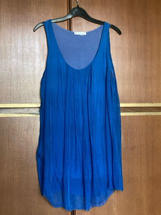 Top seta drappeggiato blu cobalto