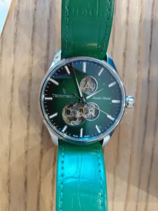 Orologio da polso con cinturino verde e cassa color argento. - Movimento automatico meccanico. - Movimento automatico - Garanzia internazionale inclusa. Prezzo in negozio 1350 euro l'orologio è nuovo mai stato usato