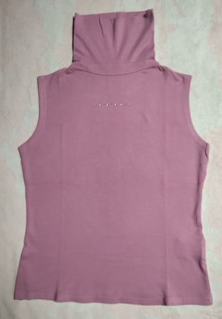 Elegante dolcevita smanicato color rosa, mai indossato. Privo di cartellino. Composizione : 95%viscosa 5% elasticizzato. Ottimo anche come sottogiacca. MIsure : spalle cm.35, sotto seno cm.43, lunga cm.50.