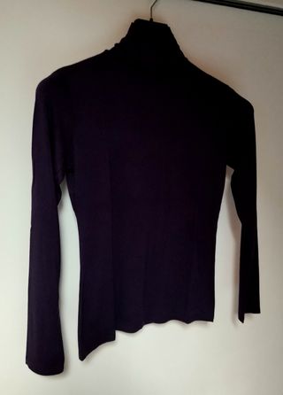 Morbido dolcevita in viscosa, color viola scuro mai indossato, privo di etichette. Misure : sottoseno cm.43, spalle cm.36, lunghezza cm.58.