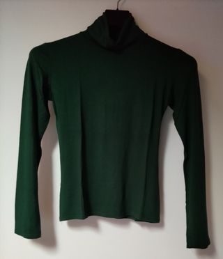 Dolcevita maniche lunghe, a collo alto, ideale da indossare da sola o sotto una giacca.Tessuto morbido e confortevole, in viscosa,color verde bottiglia. Nuovo mai indossato. Misure : Lunghezza cm.53, Spalle cm.38, Sotto seno cm.42. Nuovo mai indossato.