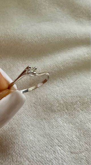 Elegante anello solitario in oro bianco 750. - Design raffinato con un punto luce centrale. - Montatura in oro bianco 750. Tg 15