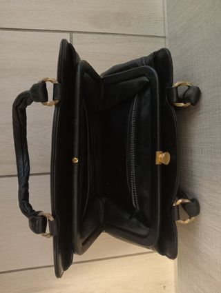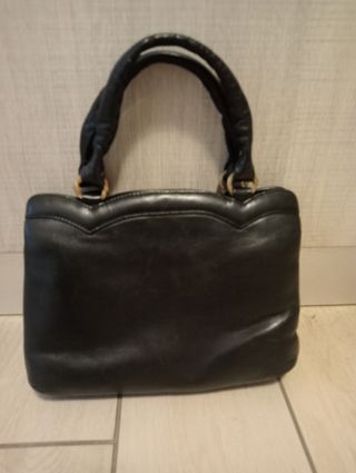 Borsetta in pelle nera vintage con manici, ha 3 scomparti e 2 tasche di cui una con cerniera. Misure cm 22x16 circa