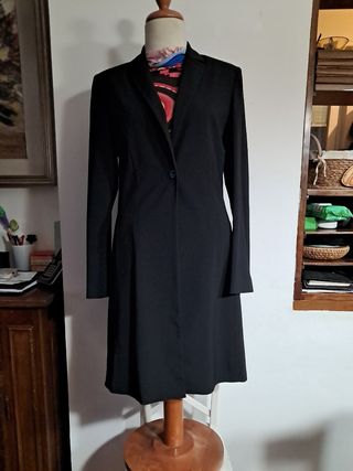 Spolverino nero taglia 36 con tasche, spacco e chiuso da un solo bottone
