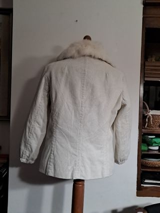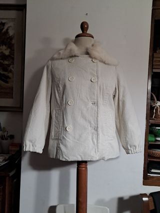 Giacca invernale di velluto a costine bianco con pelliccia sul collo staccabile oviesse young 46