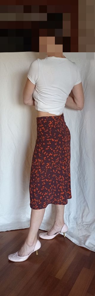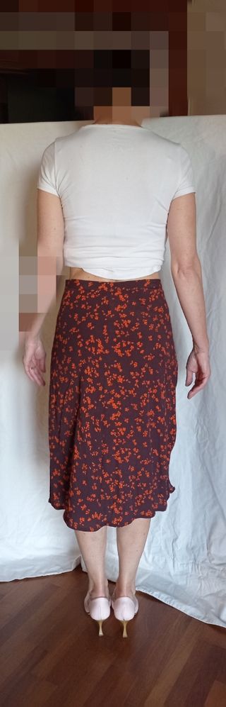 Gonna midi fiori - marrone arancione, Taglia 42