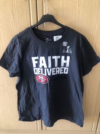 Vendo maglietta Nike della Super Bowl LVIII. È una t-shirt grigia con la scritta "Faith Delivered" e il logo dei San Francisco 49ers. - Nuova, con cartellino. - Taglia unica XL - Perfetta per i fan dei 49ers.