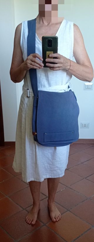 Vestitino leggero donna, taglia 42 ma veste bene anche una 40 o una 44 grazie alla coulisse in vita, lunghezza cm 85, Coulisse anche ai polsi. Come nuovo!