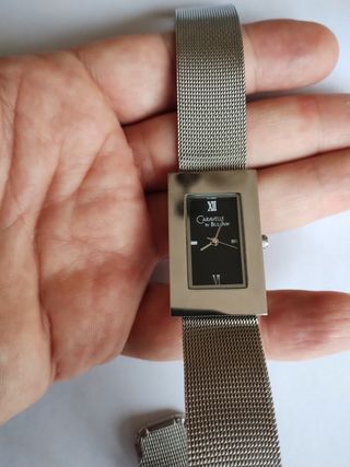 Bellissimo orologio da polso Caravelle by Bulova, con cinturino in maglia metallica. - Design elegante e raffinato. - Cassa rettangolare in metallo. - Quadrante nero con indici a bastone. - Batteria appena sostituita