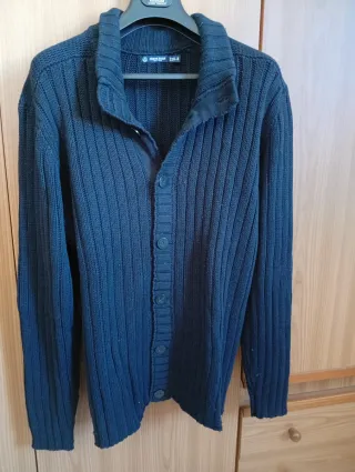 Maglione blu con chiusura a bottoni. - Bottoni lungo tutto il maglione - Maniche lunghe. - Tessuto a coste.