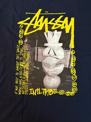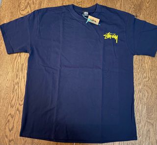 Maglietta Stussy di colore blu. - Logo Stussy giallo sul petto.