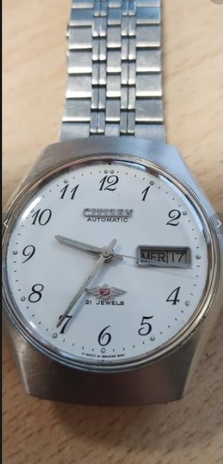 Stupendo orologio Citizen Automatico Day Date anni 80 con bracciale originale Citizen. - Bellissimo quadrante Bianco - Orologio proveniente da un lotto è rimasto in un cassetto per anni, ripulito e messo in funzione senza nessun altro intervento, a parte la sostituzione del vetro che era molto rovinato, mantiene una precisione ottima. - Condizioni ottime, minimi segni di utilizzo in rapporto agli anni. Foto e video prima della spedizione per attestarne il funzionamento. Vendita di beni usati tra privati, formula visto piaciuto Il venditore dichiara che il bene oggetto del presente annuncio è originale.