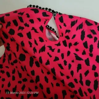 Canotta da donna con una vivace fantasia maculata. Tg M - Scollo rotondo con dettaglio di perline. - Spalline imbottite rimovibili - Design senza maniche.