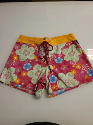 Pantaloncini da donna con una vivace stampa floreale e una cintura gialla. Tg 40 - Stampa floreale multicolore su sfondo rosa. - Cintura in vita di colore giallo. - Laccio frontale per la chiusura.